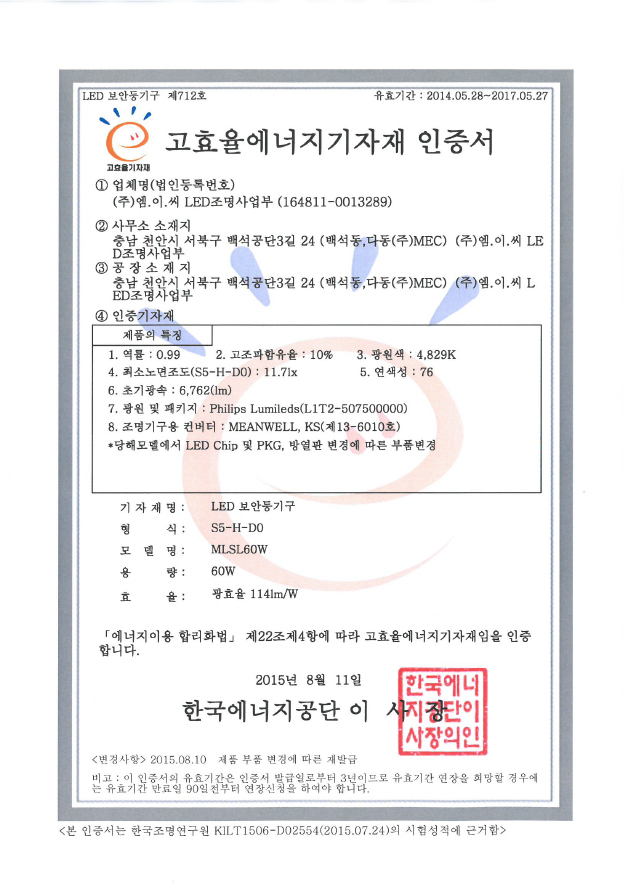 인증 | LED-보안등기구-제-712호-MLSL60W