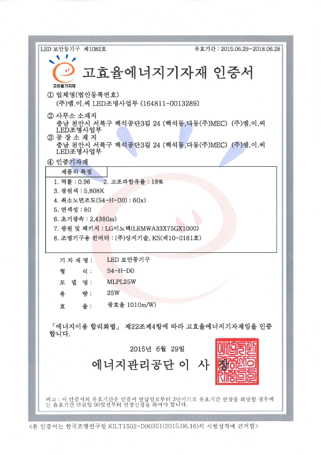 인증 | LED-보안등기구-제-1082호-MLPL25W