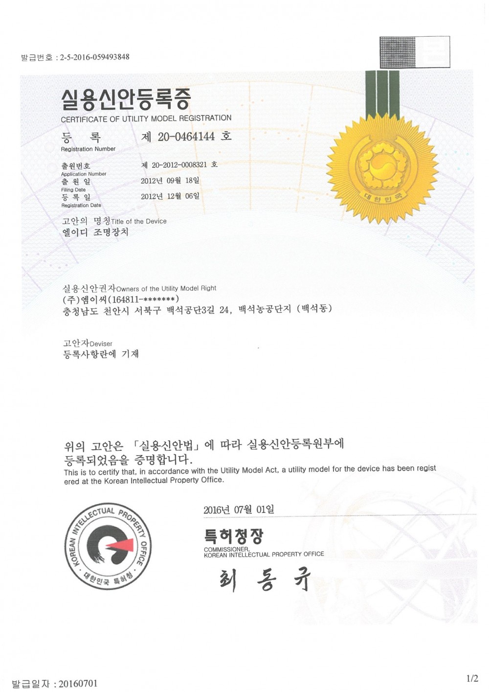 특허 | 실용신안등록증-엘이디조명장치 페이지 정보 작성자 엠이씨 작성일17-01-31 17:06 조회3,421회 댓글0건 관련링크 이전글 다음글 목록 본문 실용신안등록증-엘이디조명장치_맨하튼Ⅱ 이전글 다음글 목록